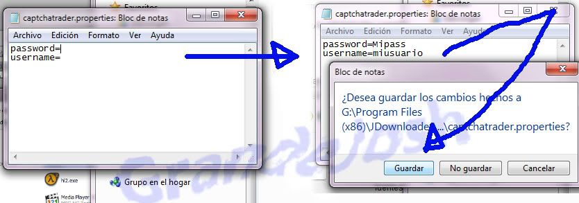 y solo pondras los datos de tu cuenta de captchatrader que te has creado. quedando algo asi: